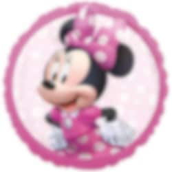 Folieballong i rosa farger med motiv av Minnie Mus i midten. En søt dekorasjon å dekorere festlokalet med foran Minnie Mus festen. Ballongen er ca 43 cm i diameter oppblåst, og fylles med luft eller helium.