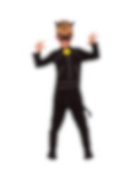 Miraculous Ladybug Kostyme Cat Noir inkluderer en svart jumpsuit med tilhørende hale, øyemaske, hårbånd med motiv av katteører og skoovertrekk. Alt er laget av 100 % polyester.