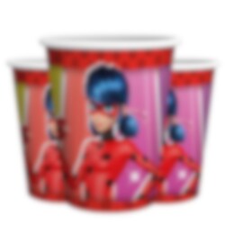 10 flotte pappkopper med motiver fra Miraculous Ladybug. Koppene er 10 cm høye og rommer 250 ml.