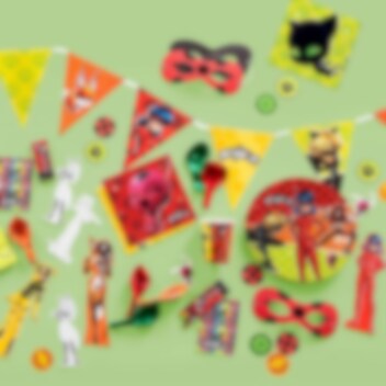 Borddekorasjoner med seks forskjellige pappfigurer fra Miraculous Ladybug og et bakgrunnsbilde av Paris. I pakken er det også litt større konfetti. Figurene er ca 23 cm høye, bakgrunnsbildet ca 35 cm og alt er laget av FSC-merket miljøvennlig papp.