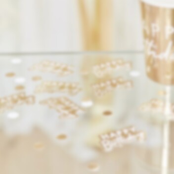 Gullfoliert bordkonfetti med en blanding av gull og hvite prikker, samt teksten "Happy Birthday" fra kolleksjonen Mix it Up. Dekorer bordet med dette for å få det lille ekstra til borddekkingen når du skal ha fest. Pakken inneholder 13 gram.