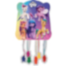 Skap magi på bursdagen med denne fortryllende My Little Pony-piñata! Laget av tykkere papp og dekorert med fargerike ponnimotiver på begge sider. De hengende snorene gjør det enkelt og spennende for barna å dra frem innholdet. Et pefekt valg for små ponnifans!