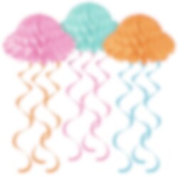3 stk. hengende dekorasjoner i lekre pastellfarger som forestiller maneter i temaet Narwhal Party. En festlig dekorasjon å henge opp når det er tid for selskap. Dekorasjonene er ca. 30 x 61 cm store.