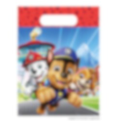 6 stk. godteposer i plast med et glad motiv av Marshall, Chase og Skye foran Lookout-tårnet. Perfekte til å fylle med godis og små overraskelser som barna kan ta med seg hjem etter bursdagen med Paw Patrol-tema.