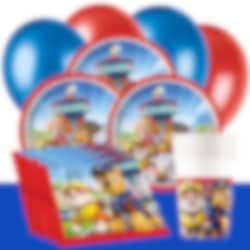 Denne komplette festpakken med Paw Patrol tilbehør inkluderer tallerkener (23 cm), pappkopper (200 ml) og servietter (33 x 33 cm) for 8, 16 eller 24 personer. I tillegg medfølger 10 stk. røde ballonger og 10 stk. mørkeblå ballonger og en mørkeblå plastduk (137 x 274 cm). Pakken for 24 gjester inkluderer 2 stk. duker.