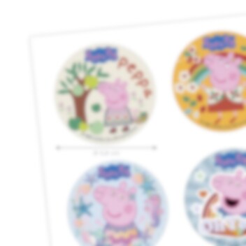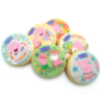 6 muffinsbilder av sukkerfri fondant med vakre motiver av Peppa Gris. Pynt muffinsene med disse for å gjøre dem ekstra fine til Peppa Gris-bursdagen din.