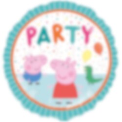 Fargerik folieballong med motiv av Peppa og George Gris sammen med en lekedinosaur fra TV-serien Peppa Gris. En fantastisk dekorasjon til hver bursdag med Peppa Gris-tema. Ballongen blir ca. 43 cm. i diameter når den er oppblåst og kan blåses opp med vanlig luft eller helium.