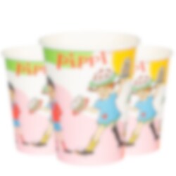 8 stk. pappkopper med fargesprakende motiv fra Astrid Lindgrens Pippi Langstrømpe. Koppene er ca 10 cm høye og rommer ca 250 ml.
