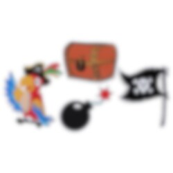 Kul trekonfetti med motiver av en skattekiste, piratflagg og andre stilige piratdetaljer. Litt mer luksuriøs konfetti som kan gjenbrukes. Konfettien er ca 5 x 6 og 2,5 x 5,5 cm store, kommer i en pose med totalt 10 stykker i.
