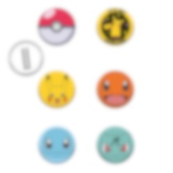 Disse fargerike knappene med forskjellige Pokémon-motiver kan festes på vesker, klær eller hvor som helst der du vil vise din kjærlighet til Pokémon. De er ideelle som små gaver til vennene dine hvis du planlegger en barnebursdag med Pokémon-tema. Knappene er 6 cm i diameter. På baksiden av knappene sitter det en plastklips. De har ingen sikkerhetsnål.