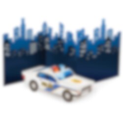 Kul borddekorasjon som forestiller en by og en politibil. En morsom ting å dekorere bordet med. Dekorasjonen er ca 69 x 30 cm stor.
