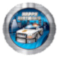 Rund folieballong med tøft politimotiv. Folieballongen er ca. 45 cm i diameter oppblåst.