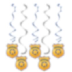 Hengende dekorasjoner med tøffe polismotiver. Heng disse oppe i bursdagsrommet for å skape en morsom atmosfære. 2 stk. av dekorasjonene er ca 99 cm lange og 3 stk. av dekorasjonene er ca 76 cm lange.