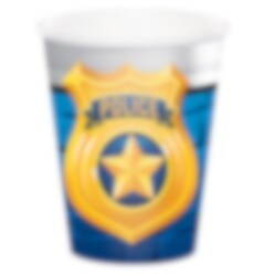 8 stk. kopper av papir med kule politimotiver. Koppene er ca 10 cm høye og holder ca 266 ml.