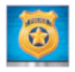 16 stk. små servietter med motivet av en politi-badge. Serviettene er 2 lags, ca 25 x 25 cm.