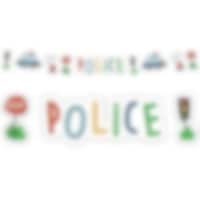 6 stk. papptallerkener med morsomt motiv av en politibil. Tallerkenene er 22 cm i diameter.