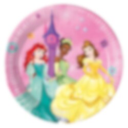 8 stk. asjetter i vakre farger med motiv av de fine Disney prinsessene Ariel, Diana og Belle. Asjettene er laget av papp og er ca 20 cm i diameter.