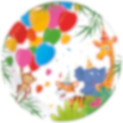 8 stk. papptallerkener med søte og fargerike motiver av jungeldyr og ballonger. Tallerkenene er 23 cm i diameter og er laget av FSC-merket papir.