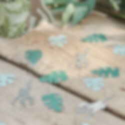 Fin konfetti formet som aper og grønne palmeblader i papir. Pynt bordet med dette når det er tid for jungelfest. Passer perfekt med våre andre relaterte artikler i temaet "Let's Go Wild!". Pakken inneholder ca. 13 gram. Produktet og emballasjen er både resirkulerbare og FSC-sertifisert.