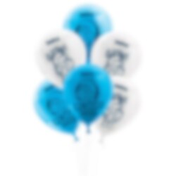10 lateksballonger med motiver fra Smurfene. Ballongene er 25 cm i diameter oppblåste og kan brukes med vanlig luft eller helium.