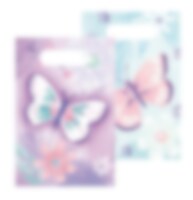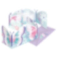 Denne komplette festpakken med med søtt tilbehør i sommerfugltema inkluderer tallerkener (23 cm), pappkopper (250 ml) og servietter (33 x 33 cm) til 8 eller 16 personer. Utover dette inneholder pakken også 10 stk. rosa og 10 stk. lyselilla ballonger og en lyseblå plastduk (137 x 274 cm).