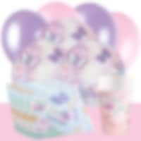 Denne komplette festpakken med med søtt tilbehør i sommerfugltema inkluderer tallerkener (23 cm), pappkopper (250 ml) og servietter (33 x 33 cm) til 8 eller 16 personer. Utover dette inneholder pakken også 10 stk. rosa og 10 stk. lyselilla ballonger og en lyseblå plastduk (137 x 274 cm). Legg gjerne til godteposer eller partybokser, godteri, småleker, pynt og spennende baketilbehør.