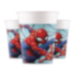 8 stk. pappkopper med motiv av Spiderman foran en blå bakgrunn. Et kult tilbehør til når man dekker på bordet til en fest. Koppene er ca. 10 cm høye og rommer ca. 200 ml.