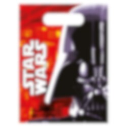 6 stk. godteposer med motiv av Darth Vader foran en rød bakgrunn fra Star Wars serien. Fyll posene med godteri og en overraskelse og gi de til vennen under festen med Star Wars tema.
