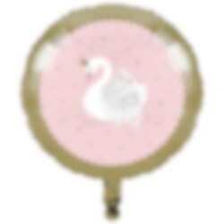 Folieballong i fargene, rosa, gull og hvit samt med motiv av en fin svane. En imponerende dekorasjon å pynte med til festen med Stylish Swan som tema. Ballongen blir ca 45 cm i diameter oppblåst og blåses enklest opp med helium.