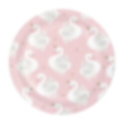 8 stk pappasjetter i lyserosa med vakkert motiv av svaner og gullstjerner. Et passende komplement til festen med Stylish Swan tema. Asjettene er ca 18 cm i diameter.