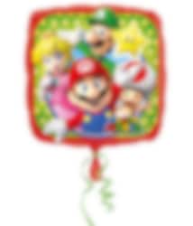 Fin folieballong med motiver av Mario, Luigi, Princess Peach, Toad og en stjerne fra Super Mario-spillserien. En flott dekorasjon for Mario-festen. Ballongen blir ca 43 cm i diameter når den blåses opp og kan blåses opp med vanlig luft eller helium.