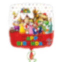 Dekorativ folieballong med teksten "Happy Birthday" og med motiv av Mario og genget fra den klassiske spillserien Super Mario Bros. Dekorer bursdagsrommet med denne for at lage en kul stemning. Ballongen er ca 43 cm i diameter oppustet. Kan pustes opp med vanlig luft eller helium.