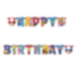 Fargerik girland med teksten Happy Birthday med motiv fra Super Mario spillen. En moro ting at ha som dekorasjon til bursdagen. Girlanden er laget av papp og er ca 190 cm lang.