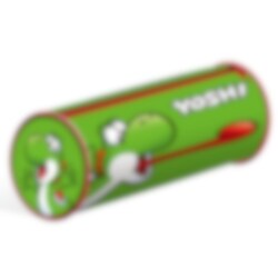 Det fargerike pennalet i grønt og rødt viser Yoshi med sitt store smil og lange tunge, klar for nye eventyr i klasserommet. Den runde formen gir god plass til blyanter, viskelær og små hemmeligheter.