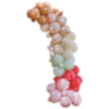 Vakker ballongbue i muntre farger som du bygger selv. En virkelig imponerende dekorasjon som passer perfekt til bursdagen. Pakken inkluderer totalt 70 stk. ballonger i forskjellige størrelser og tilbehør. Ballongbuen er ca 4 meter lang.