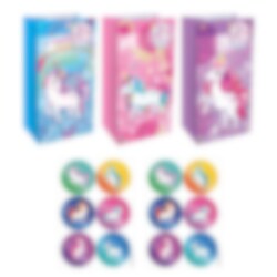 Enhjørning - Godteposer med klistremerker 12 stk.