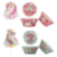 Denne komplette festpakke med søte enhjørningstilbehør inkluderer tallerkener (23 cm), pappkopper (200 ml) og servietter (33 x 33 cm) til 8 eller 16 personer. Utover dette inneholder pakken også 10 stk. rosa og 10 stk. lyselilla ballonger og en lyselilla plastduk (137 x 274 cm).