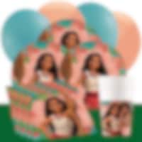Denne fargerike Vaiana-bursdagspakken har alt du trenger for en tropisk og stemningsfull feiring! Pakken inneholder tallerkener (23 cm), pappkopper (200 ml) og servietter (33 x 33 cm) for 8 eller 16 personer. I tillegg følger det med 10 turkise og 10 ferskenfargede ballonger som gir en varm og festlig stemning, samt en mørkegrønn plastduk (137 x 274 cm) som skaper en fin kontrast på bordet. Med en ferdig bursdagspakke går det raskt og enkelt å arrangere en uforglemmelig bursdag med glade barn og sommerlig atmosfære. Kompletter gjerne med godteposer, partybokser, godteri, småleker og andre Vaiana-dekorasjoner for å gjøre feiringen komplett.