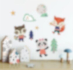 Skap en magisk stemning på barnerommet med disse sjarmerende veggklistremerkene med søte skogsdyr! De detaljerte figurene har en lett 3D-effekt og glitrende detaljer som gjør dem ekstra levende og unike.