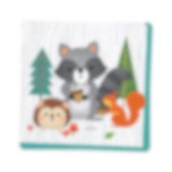 16 stk. små servietter i fine farger med motiv av søte skogsdyr på begge sider. Passende å dekke bordet med før festen med Woodland Animals som tema. Serviettene er 2-lags og er ca 25 x 25 cm store når de er brettet ut.