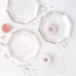 Hvite- og roségullprikkete tallerkener 8 stk.