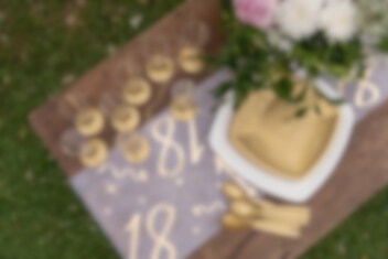 Kombiner gjerne med andre vakre borddekorasjoner i 18-årstema.