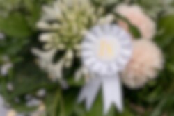 Vakker rosett i hvitt og gull med tallet 18 på. Rosetten kan brukes både som et dekorativt tilbehør i for eksempel blomsterarrangementer eller bæres av deg på din 18-årsdag. Rosetten er 8 cm i diameter og 15 cm høy.