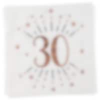 Flott bordløper som glitrer med dekorative mønstre i rosagull og tallet "30". Denne praktiske bordløperen leveres på rull, er 30 cm bred og 5 meter lang – nok til flere bord og en stor fest.