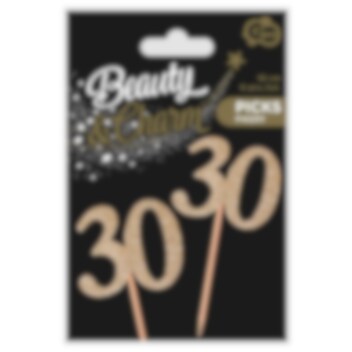 6 stk. gullglitrende cake toppers, som kan brukes til å dekorere kaker og bakverk til 30-årsdagen. Lengde ca. 10 cm.