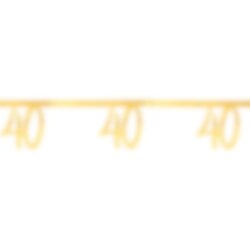Dekorativ girlander av papp i med skinnende gullfolie og tallet 40. Girlanderen er en utmerket dekorasjon til din 40-årsfest og hvert tall er 18 x 23 cm stort og selve girlanderen er 250 cm lang.