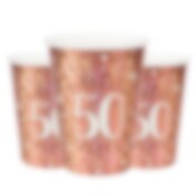 Pappkopper Roségull Glitrende 50 år, 10 stk.