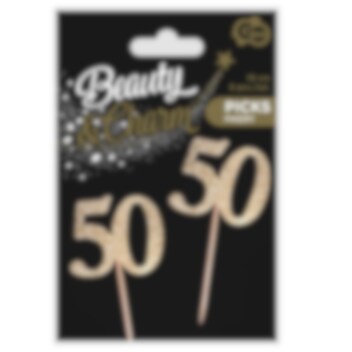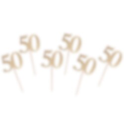6 stk. gullglitrende cake toppers, som kan brukes til å dekorere kaker og bakverk til 50-årsdagen. Lengde ca. 10 cm.