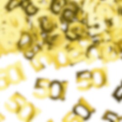 Skinnende gullkonfetti formet som tallet "50". Perfekt å drysse på bordet når det er tid for 50-års feiring. De kan også brukes som pynt på både bord- og invitasjonskort. Tilgjengelig i en pose med ca. 15 gram konfetti.