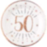 Papptallerkener Roségull Glitrende 50-årsfest 10 stk.